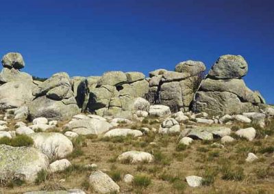 Les massifs de granite représentent les reliefs les plus élevés de la région sous forme de dômes arrondis. Le granite s’érode et s’altère surtout avec l’eau en donnant un sable grossier appelé arène granitique. Les paysages typiques des granites sont formés de dépressions à fond plat, les alvéoles, et de superpositions de blocs arrondis, les chaos. Sur les flancs des dômes de granite, l’eau s’écoule dans des ruisseaux et dévale les pentes en cascades. Vers les sommets, la gélifraction joue un rôle dans l’érosion qui était encore plus important durant les glaciations du Quaternaire.