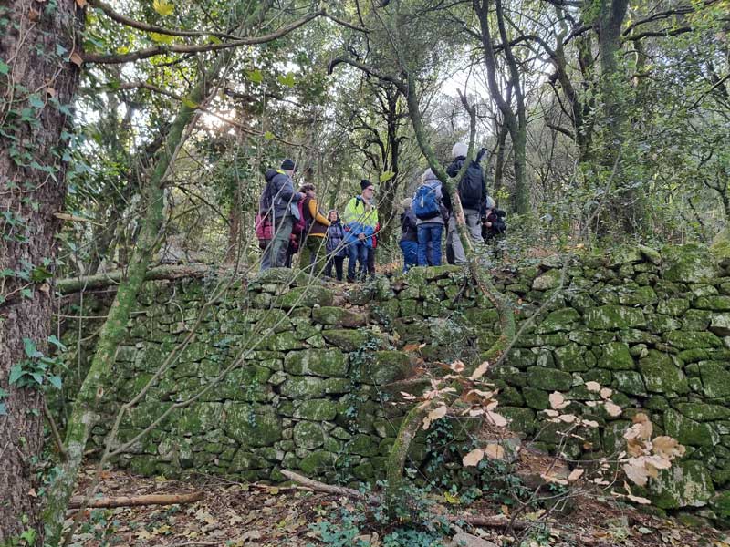 Nous étions 20 à nous retrouver en ce beau samedi hivernal pour parcourir la Vallée Obscure, à la découverte des habitats, aménagements et ouvrages en pierres sèches construits par les Cévenols d’autrefois.