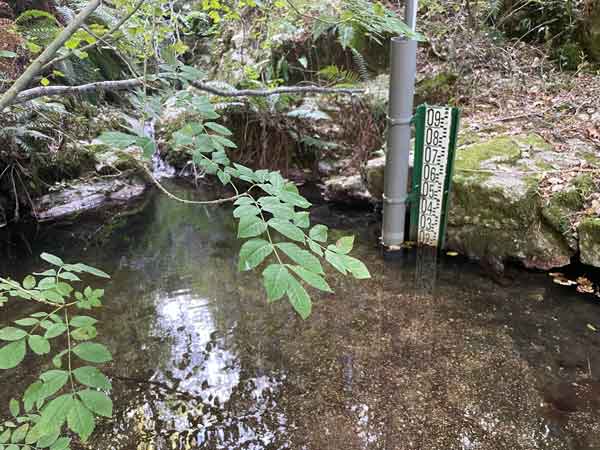 Ici se trouve une station hydrométrique destinée à mesurer le niveau de l’eau avec une échelle limnimétrique graduée verticalement, completée par une sonde de pression reliée par une centrale informatique. La station fait l’objet d’un suivi pour comprendre l’influence de l’entretien et de la réhabilitation des tancats sur les écoulements d’eau du valat. Puis vous pouvez monter un sentier à droite qui arrive à la cascade.
